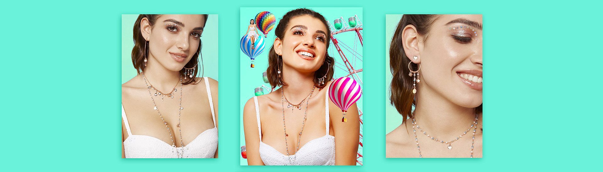 Collana rosario con cristalli Sky e charms tema "buona sorte"