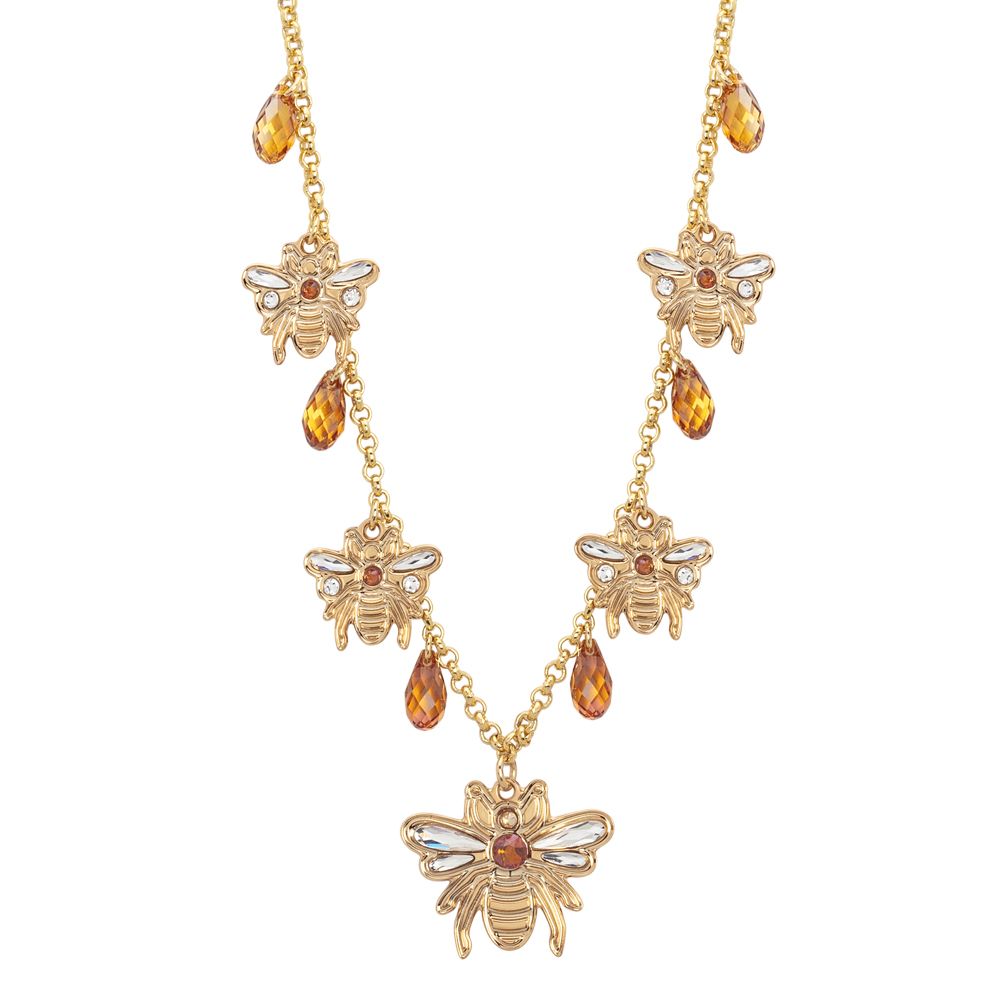 Collana lunga con api e nidi d'ape decorati da Swarovski